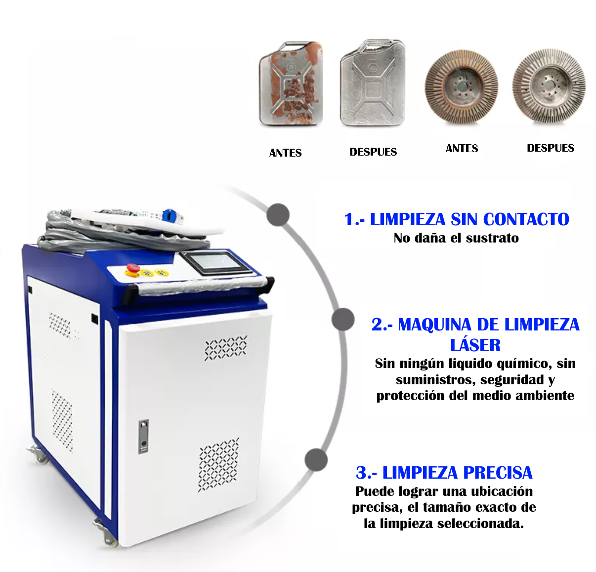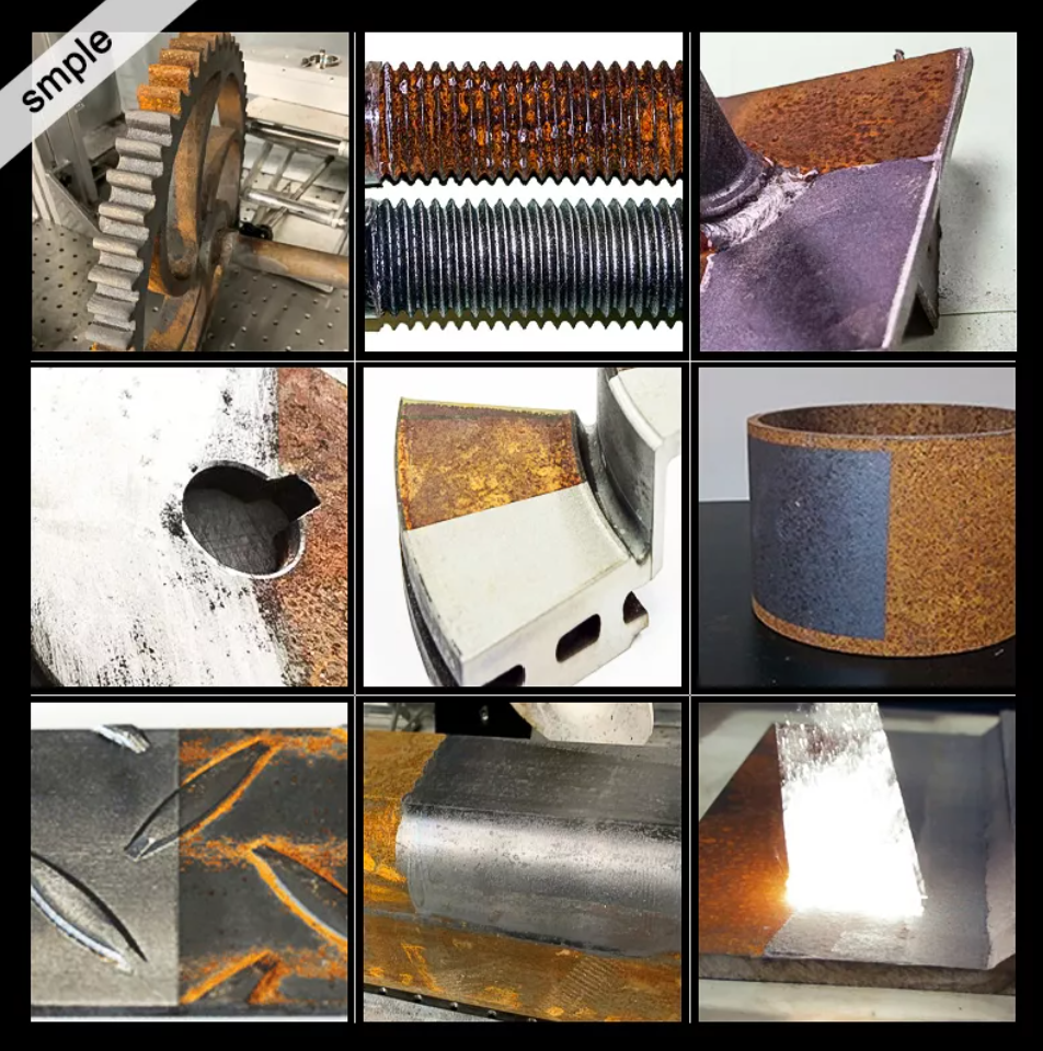 • La máquina de limpieza láser puede eliminar rápidamente el polvo, la pintura de recubrimiento, el aceite y otros contaminantes en la superficie de la pieza de trabajo;